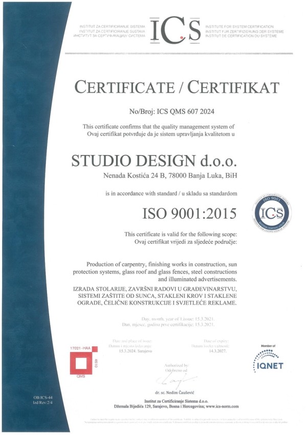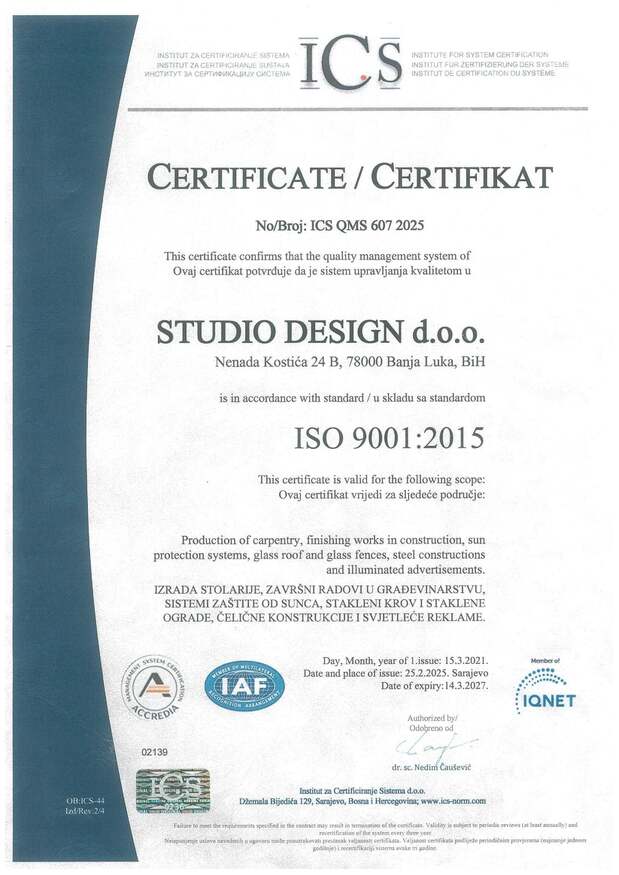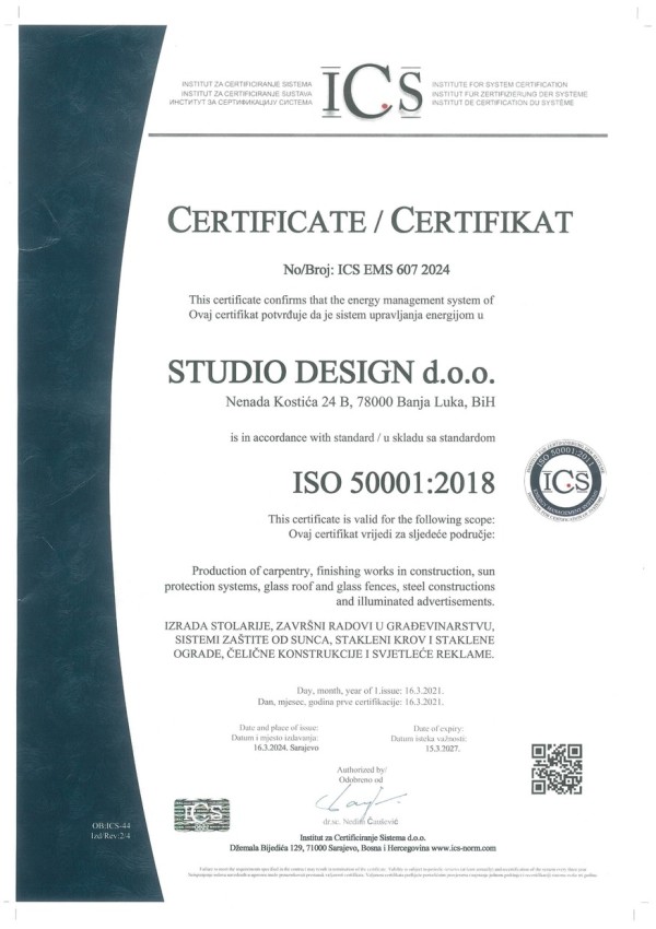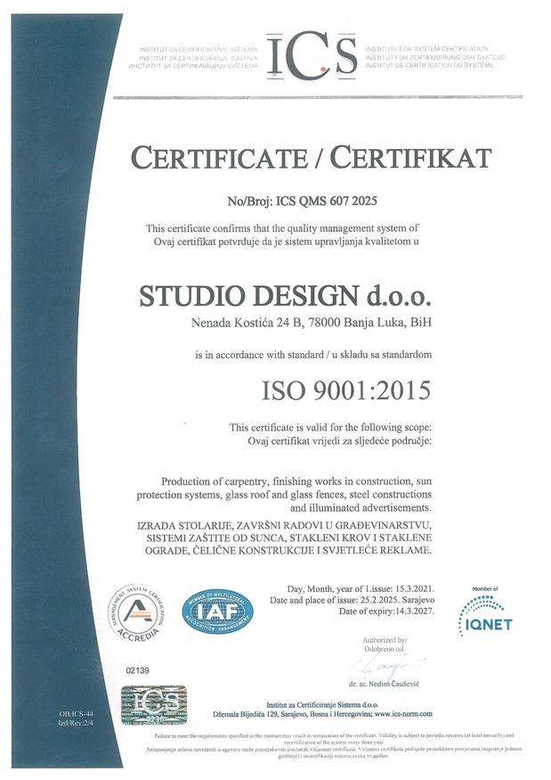 Posjedujemo certifikate koji potvrđuju usklađenost sa standardima kvaliteta i sigurnosti, čime garantujemo da su naši proizvodi pouzdani za dugotrajnu upotrebu u različitim klimatskim i tehničkim uslovima.